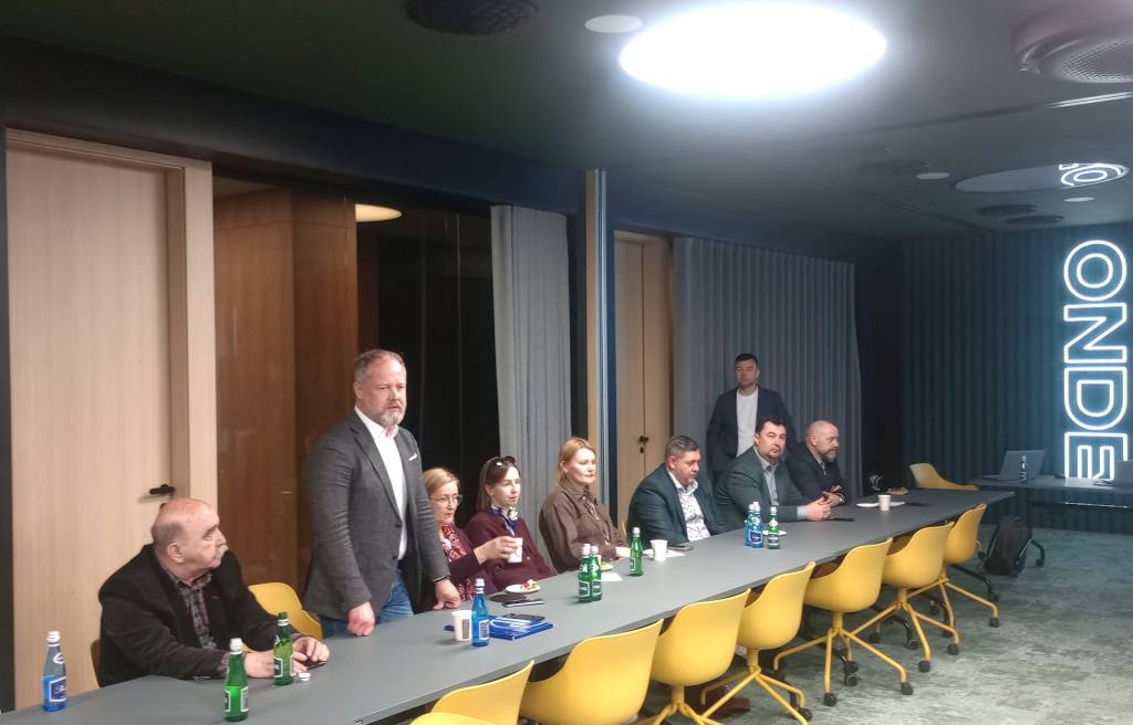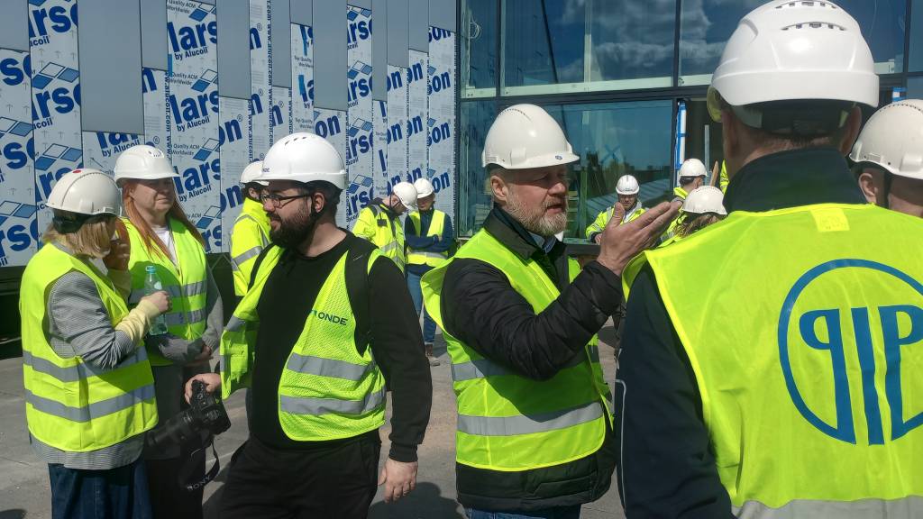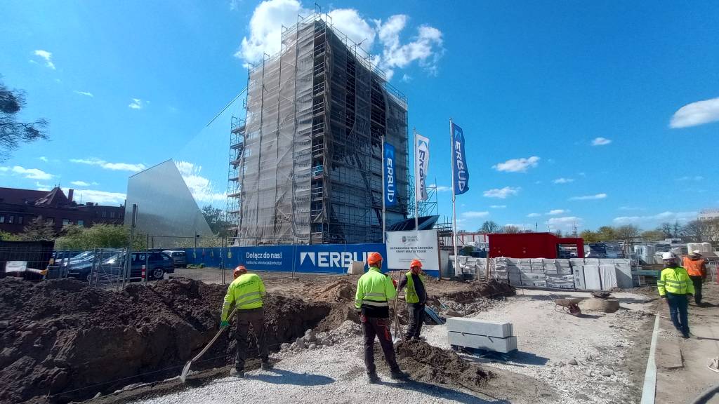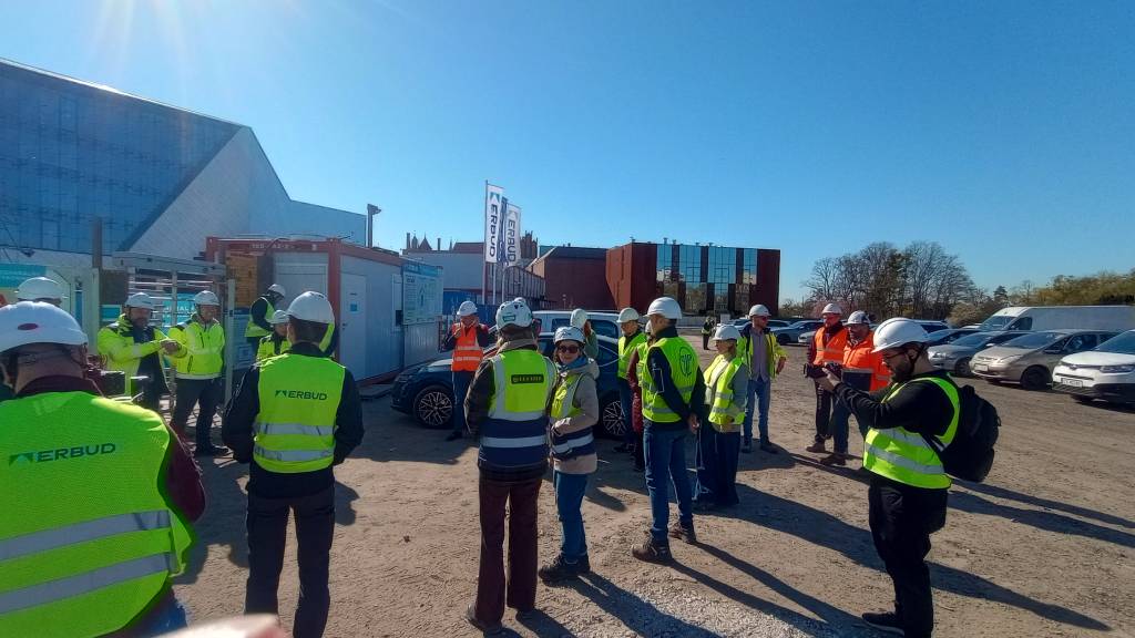 W dniu 21.04.2026 r. na terenie budowy Europejskiego Centrum Filmowego „CAMERIMAGE” w Toruniu odbyło się kolejne w bieżącym roku spotkanie Grupy Roboczej i Komitetu Sterującego przy Porozumieniu ds. Bezpieczeństwa Pracy w Budownictwie. Gospodarzem spotkania, w którym uczestniczyło 26 osób był generalny wykonawca budowy – firma ERBUD. W trakcie spotkania uczestnikom przedstawiono prezentację z przebiegu budowy i sposobu jej dokumentowania. Atrakcją spotkania była możliwość obejrzenia budowanego obiektu będącego w tzw. stanie surowym. Następnie uczestnicy spotkania udali się do siedziby jednego z sygnatariuszy Porozumienia, gdzie omówiono m.in. wypadki przy pracy które miały miejsce na terenie budowy realizowanych przez jednego z sygnatariuszy Porozumienia. Następne spotkanie uczestnicy zaplanowali na 2 czerwca br.