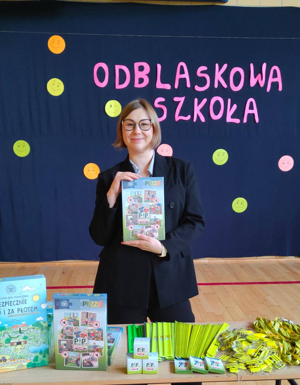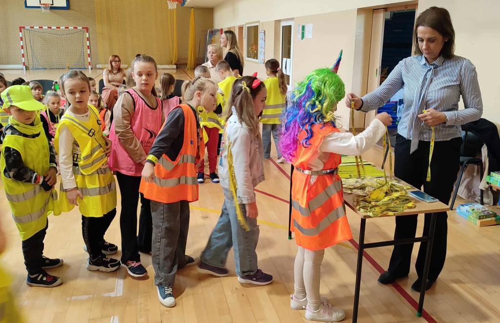 Okręgowy Inspektorat Pracy w Bydgoszczy przekazał uczniom odblaskowe materiały promocyjne, a także gry i karty edukacyjne.