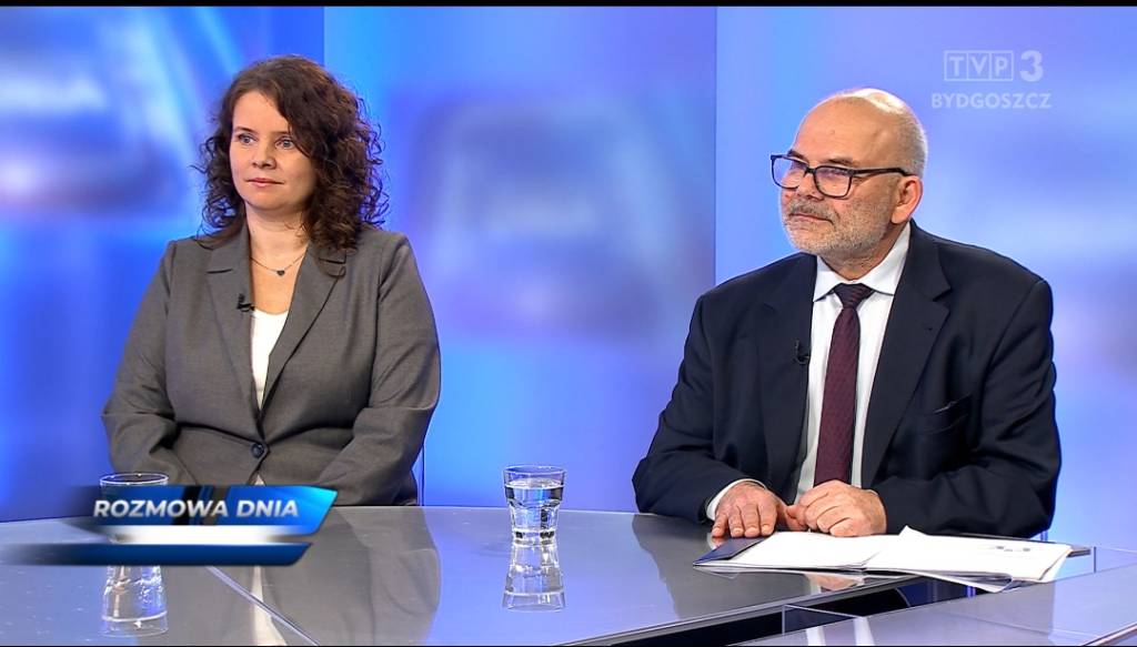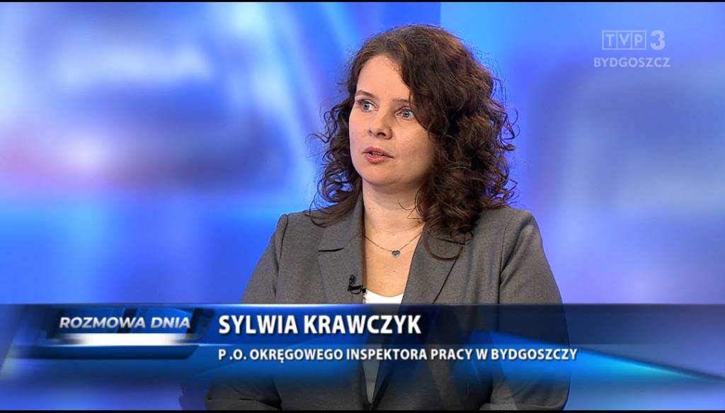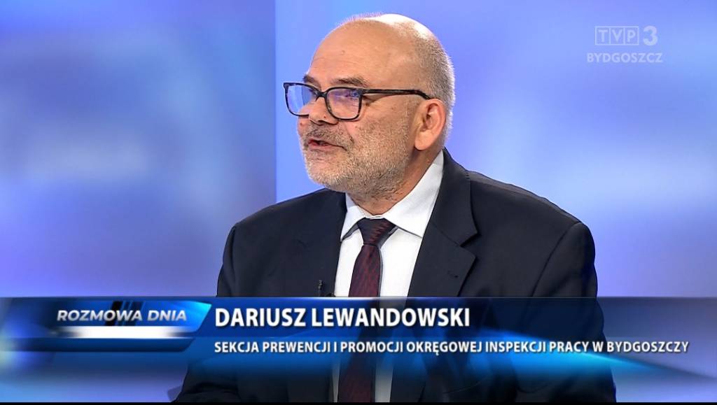 19 listopada 2025 r. Sylwia Krawczyk, p.o. Okręgowego Inspektora Pracy oraz Dariusz Lewandowski, nadinspektor pracy sekcji prewencji i promocji wzięli udział w „Rozmowie dnia” na antenie TVP3 Bydgoszcz.