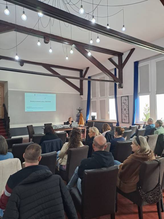 Spotkanie poprowadzili inspektorzy pracy Ewa Weśniuk oraz Piotr Orliński, którzy omówili najważniejsze przepisy dotyczące zatrudniania pracowników młodocianych, a także zmiany w przepisach, które weszły w życie w 2026 r. Uczestnicy zapoznali się z aktualnymi wymaganiami prawnymi oraz obowiązkami pracodawców wynikającymi z przepisów prawa pracy.