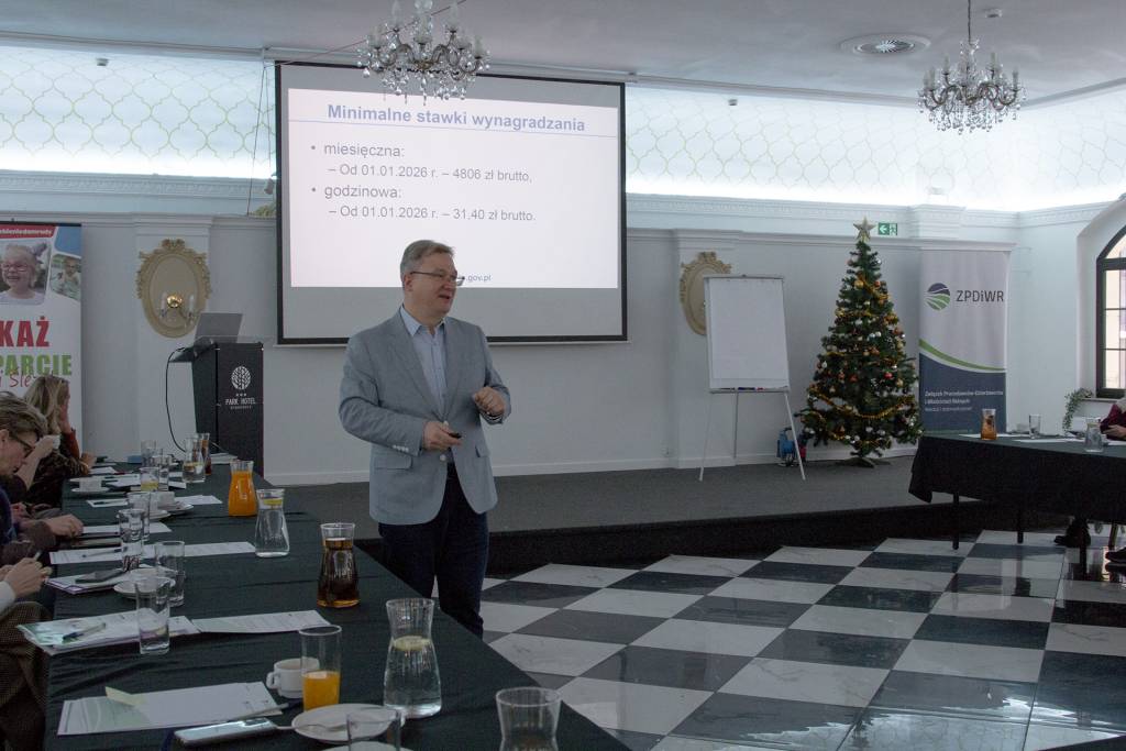 Podczas spotkania, inspektor pracy Dariusz Kistela omówił najważniejsze zmiany w przepisach prawa pracy, istotne z punktu widzenia funkcjonowania przedsiębiorstw.